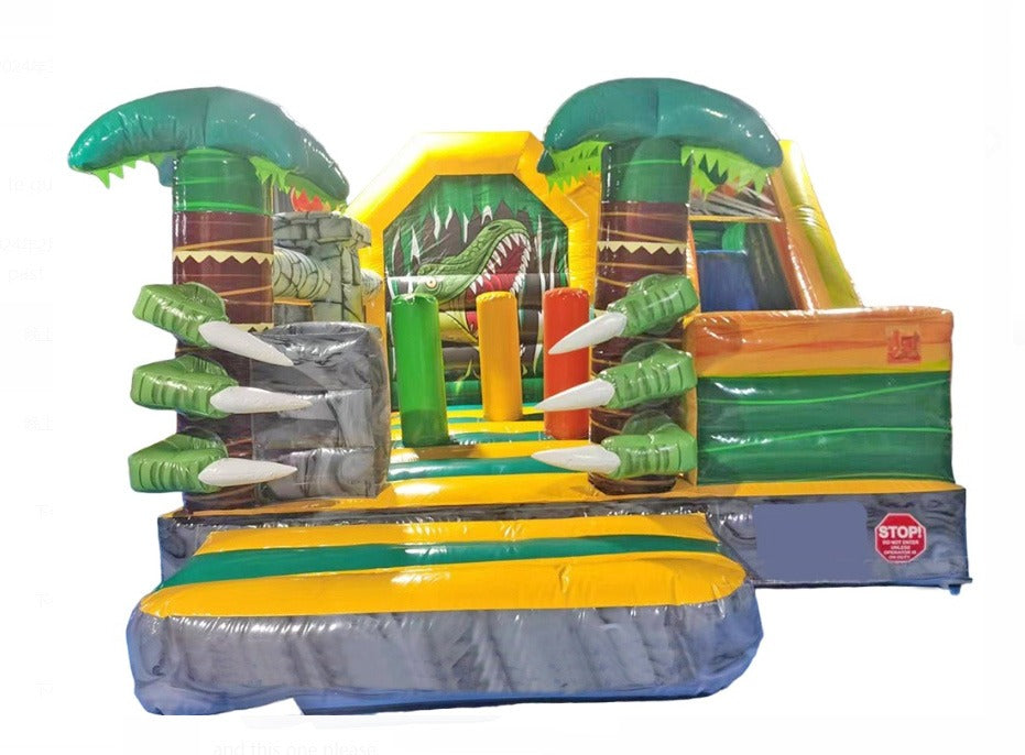 🌋 Aventura Jurássica Garantida! O Dinossauros Combo é um insuflável temático ideal para crianças apaixonadas por dinossauros. Com um design detalhado de selva pré-histórica, conta com área de saltos, escorrega e obstáculos interativos, proporcionando diversão sem limites!